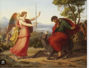 Throughout the books of the Bible where Balaam is noted, there is disparity between the personalities attributed to Balaam. In Numbers 22, God manifests himself to Balaam and tells him he may go with the Moabites. Balaam obeys God and goes with them yet God is angry with him for going. Although God has chosen Balaam as his emissary, a person to speak for him, Balaam next appears to be cruel by beating his donkey. Commentary states “This episode of Balaam and the she-ass derives from a different tradition that contradicts the favorable view of Balaam expressed by the main story. In this version, God is very angry with the prophet and in turn depicts the donkey as the actual visionary. Balaam becomes the object of mockery: he is portrayed as being blind to divine will; it is the ass that sees what the seer cannot.”