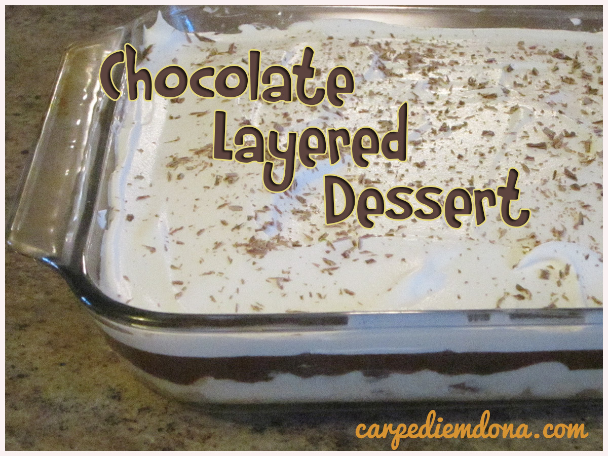 For our Christmas dinner, my step-daughter requested a chocolate dessert I had brought to her house several years ago. She described the dessert as being layers of crust, chocolate pudding and whip cream. For the life of me, I couldn’t remember what this dessert might have been. Going through my recipe box, I came across a recipe from allrecipes.com for a Coconut Cream Dessert. Personally, I would much rather have had the Coconut Cream Dessert, but that’s not what was requested. I modified this dessert and came up with an incredibly yummy chocolate dessert. She was pleased.