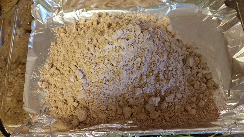 Line bottom and sides of a 9″x 13″ baking pan with aluminum foil, leaving an overhang on two short sides. Grease foil.
