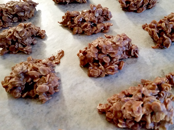 By the way, while you are waiting for your no-bake cookies to cool, (cuz it’s no fun to burn your tongue), you can click here to read the history behind the Hershey’s brand.