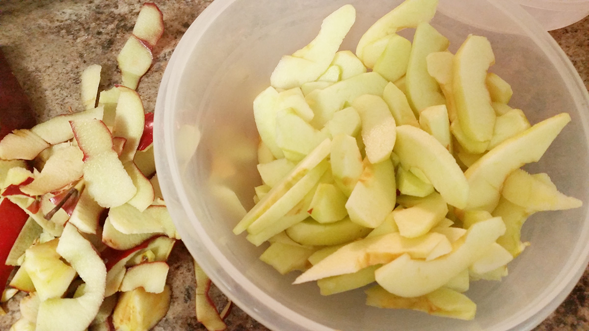 Peel and dice apples.
