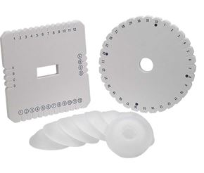 Many online beading sites offer the foam disks. Riogrande.com offers a beginning Kumihimo kit for $8.95, as pictured above, which includes two foam disks and plastic bobbins used for winding your thread.