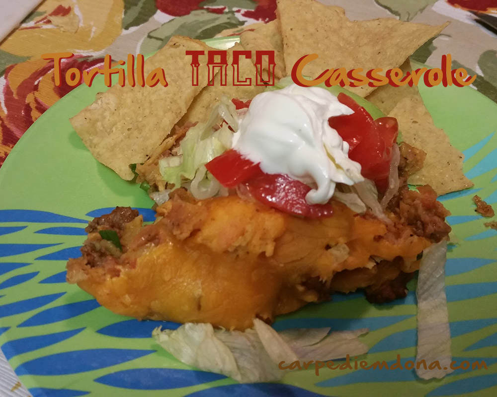 Bake at 350° for about 20 minutes. Serve with shredded lettuce and sour cream or your favorite taco toppings and additional tortilla chips, if desired.