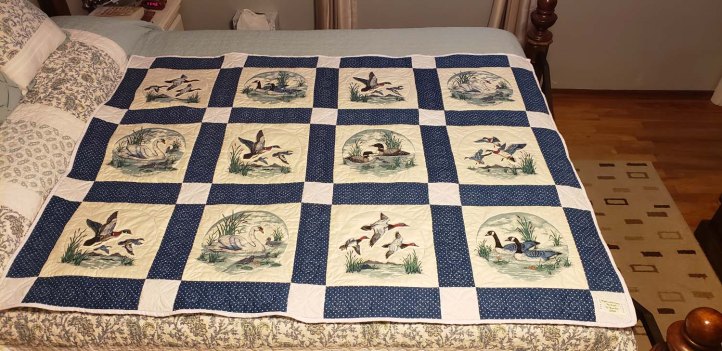 After I’d made several quilts for other members of my family, my husband asked if I could make a quilt for him. I remembered that quite a few years ago (fifteen?) I began putting together a quilt top for one of my boys’ beds. It never got any further than being pieced together. I’d always liked the quilt top so I dug it out of storage and decided I’d finish the quilt for my him for Christmas.
