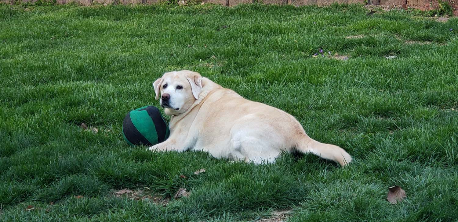 My husband and I have two yellow Labradors, Molly and Lily, who we call “our girls”. They will both be ten years old this year and we’ve had each since they were eight weeks old. They came from the same breeder and are half-sisters, sharing the same father, but born four months apart.