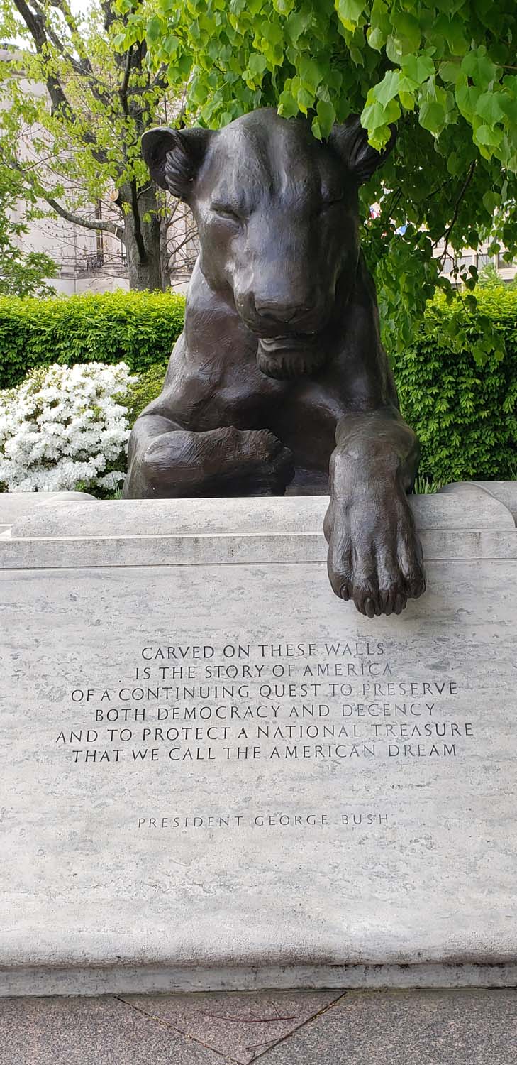 There were very few places open along this end of the mall so we walked in vain to find a restroom until we got to the Eisenhower Memorial and their restrooms were open. I jokingly said that I now knew the real reason why they swarmed the Capitol in January, nothing was open and everyone had to pee.- Vietnam Veterans Memorial