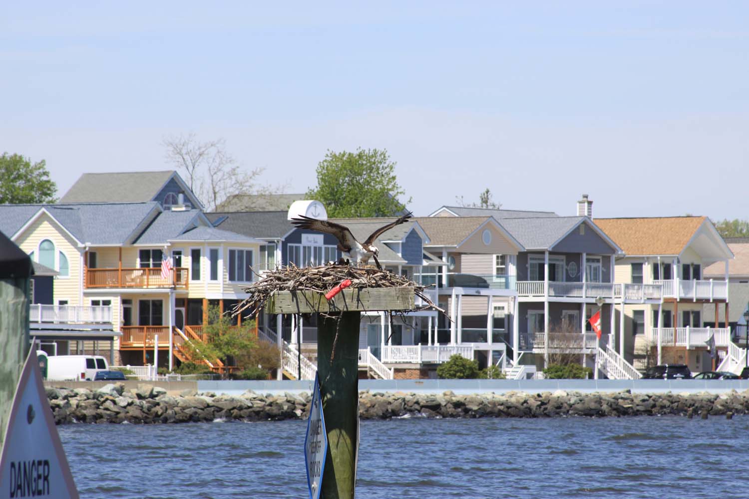 One of the things I told my son I wanted to do was see the ocean. When he told me that the closest ocean view was about four hours away, I decided I’d settle for Chesapeake Bay which was only a little over an hour from his home. This was a really good choice. It was an absolutely beautiful day. It was warm and sunny, the sky was blue and I even got a sunburn. This was a huge contrast with what the folks back home were experiencing; snow. Yep, sorry we missed that.