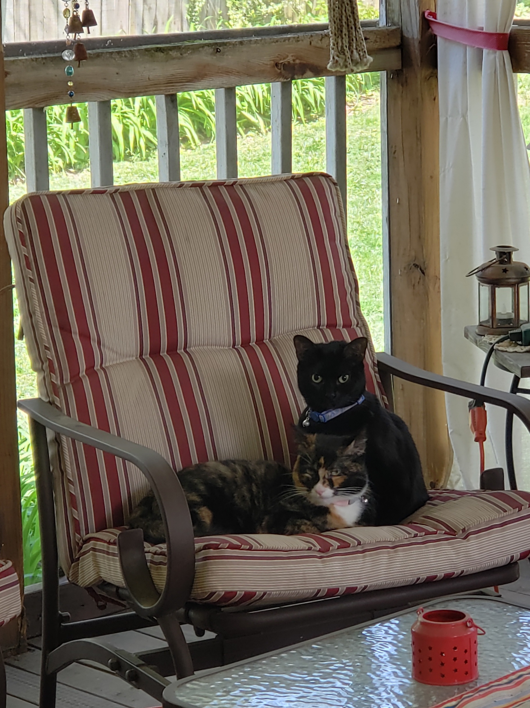 We’re in love. My “chicas” not so much. “Baby Kitty” spent the first two days hiding under the bed in the basement but “Momma” kitty let Millie know very soon who was Top Dog, and it wasn’t Millie.