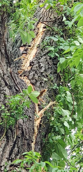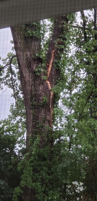 We both stood there staring at the tree. But the more we stared, the more I realized that the tree (luckily) had not been split at the fork but had been hit by lightning.
