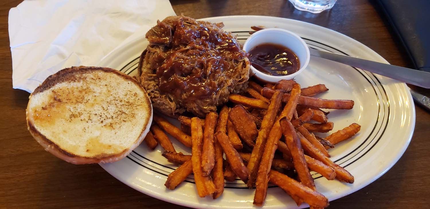 Unfortunately, once we got to the Grafton Ferry Landing, we discovered the ferry only runs Thursday-Sunday. Bummer. We were about halfway between St. Charles and West Alton. Our choices to get to Grafton were to go back to St. Charles and take the Golden Eagle Ferry and Brussels ferries through Calhoun County or drive the ten miles to West Alton to cross the river and then drive the fifteen miles west to Grafton. That would have put our spur-of-the-moment luncheon outing at another two hours. So instead, we decided to stop in the little town of Portage Des Sioux and have lunch at the only open restaurant, “Froges.”