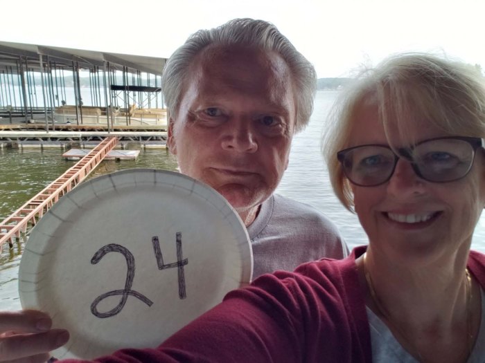 We spent our vacation week at Alhonna Resort at Lake of the Ozarks again. A really quiet (read here, boring) week with not much to do. We’ve done almost everything that doesn’t require a boat or a jet ski. To add to that, poor Millie got blisters on the pads of her left paw. One of those things you never think of. I’ve had dogs my whole life and never encountered this before. So her injury curtailed our excursions even more. And if that wasn’t enough, the Great Hunter got covered in chigger bites from walking Millie in the vacant lot next door to the resort. He took Benadryl which tended to knock him out. I’ll have to remember that when he gets on my nerves. 😉
