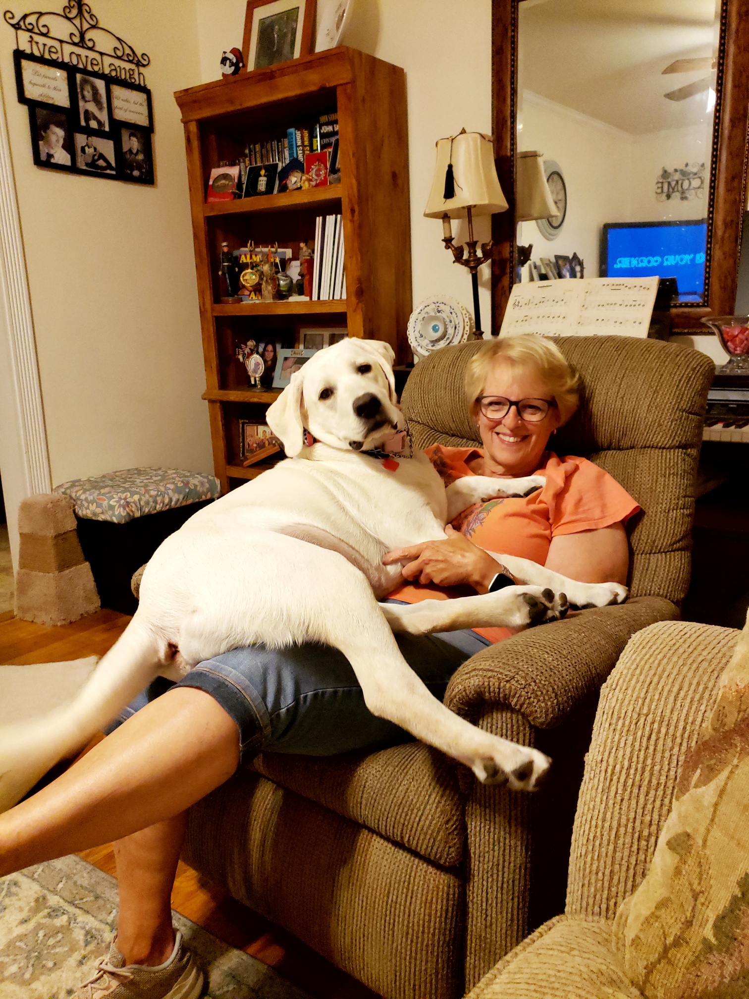 Our wild child is seven months old and 80 whopping pounds. Millie is amazing with her strength and speed and how fast she learns. The biggest problem is that she is just so big and our house, although not extremely small, would be classified as a “starter home” on HGTV. And, we have stuff. Don’t get me wrong, it’s not hoarder-type stuff, it’s just a lot of regular stuff.