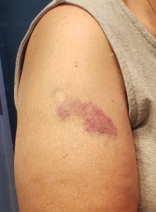 Luckily, the injury to my knees is apparently only soft tissue. But I was limping for a day or two. By that evening my shoulder was beginning to hurt and I wasn’t even aware that I had bruised it until I undressed for bed. I certainly hoped I hadn’t injured my rotator cuff. I know healing from a rotator cuff repair is a real bugger.