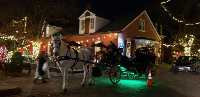 Character actors and carolers wander among the crowds. You can take a horse-drawn carriage ride, have a hot drink or a cold drink or a meal or get wonderful cookies at Grandma’s Cookies. If that isn’t enough, there are always Riverside Sweets where you can indulge your sweet tooth with plenty of chocolates, ice cream and taffies.