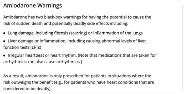 Amiodarone is one of the best medications for heart rhythm problems, but unfortunately, it also has many, many possible dire side effects including lung problems, liver problems, vision, and heart problems, stomach, thyroid, and nerve problems, as well as a host of other minor side effects. Generally, this drug is only prescribed on a short-term basis for life-threatening arrhythmias or when other drugs have not worked (which was my case). There is a Facebook group entitled “Stop Amiodarone”, which if you weren’t afraid of the drug before, if you read the posts, you would be now. Is this why doctors tell you not to google stuff on the internet?