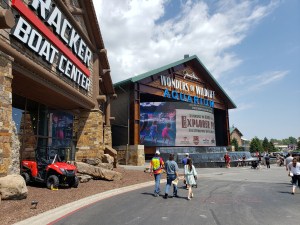 The Landing has a beautiful fountain on the waterfront of Lake Taneycomo. (Nerd fact, “Taneycomo” is short for Taney County, Mo. where the lake is situated.) The lake was formed when the White River was dammed by the Power Site Dam in 1913 on the north and in 1958 by the Table Rock Dam on the south. At night the fountain is lit and creates a beautiful light show.