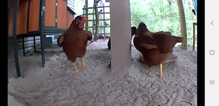 They’ve got video surveillance all around their house and inside their chicken coop, which they have named “Peckerhead Palace” after one of their chickens. It’s a pretty neat setup below their deck and includes a coop and perches and toys. Those chickens don’t want for anything, well, maybe their freedom. Before last week, they were basically free-range chickens and were only penned at night for their safety. One of them (I can never remember which chicken is which) was having a fit for about two days because she was used to laying her eggs out in the yard. You could hear her squawking on the surveillance camera. She did not like being cooped up. (So that’s where that phrase came from!)