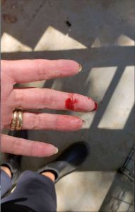 Each chicken lays about one egg a day, so I’ve had plenty of eggs to give out to friends. So far, there’s only been one casualty, and of course, it was me. Caught my finger in the coop slide.