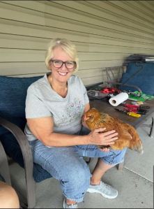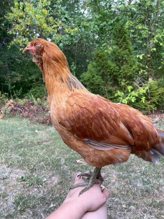 When my son and his wife moved back to Missouri from the Washington D.C. area, one of the things his wife wanted was chickens. So shortly after they moved into their rural home, they bought six chickens. One, unfortunately, didn’t make it but the others are all hale and hearty. And, my son can’t have an animal without making it a pet, so all the chickens are domesticated and have names and let you pet them. Pretty cool.