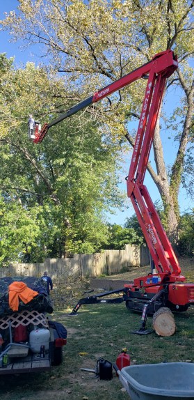 These guys made the work look so easy. The Great Hunter wasn’t home when the work was done. It’s a good thing too because he probably would have sweet-talked his way up in the bucket and have a whack at one of the branches. He’s wanted to take the tall branchless tree down for years but his son and I both voted him down.