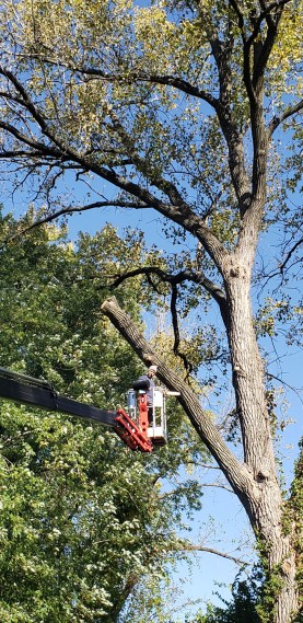 The offending tree that has kept me awake at night is a 60′ tall cottonwood tree in the upper corner of our backyard. It is a massive tree and has three branches, one of which hangs toward our house.