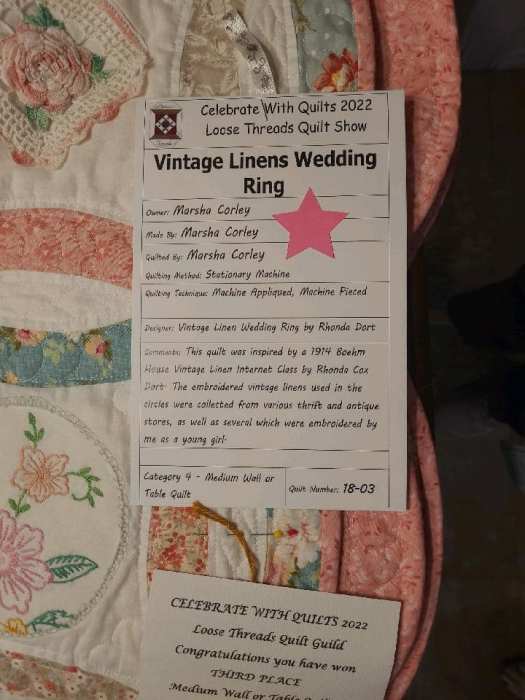[…] first weekend in November my quilt guild hosted a quilt show at St. Charles Community College and my vintage linen wedding ring quilt won third place in its […]