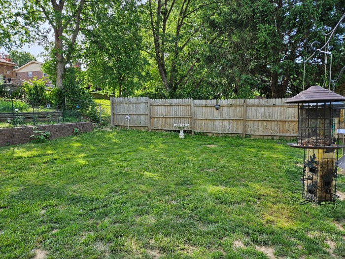 So after our “discussion” about Lowes and the fence, we did indeed come back and take the fence down. We also got the 8′ post up and I got the solar lights on it and, dern, it’s so cute. And my grass looks so nice. (I’m not looking forward to my water bill though.)