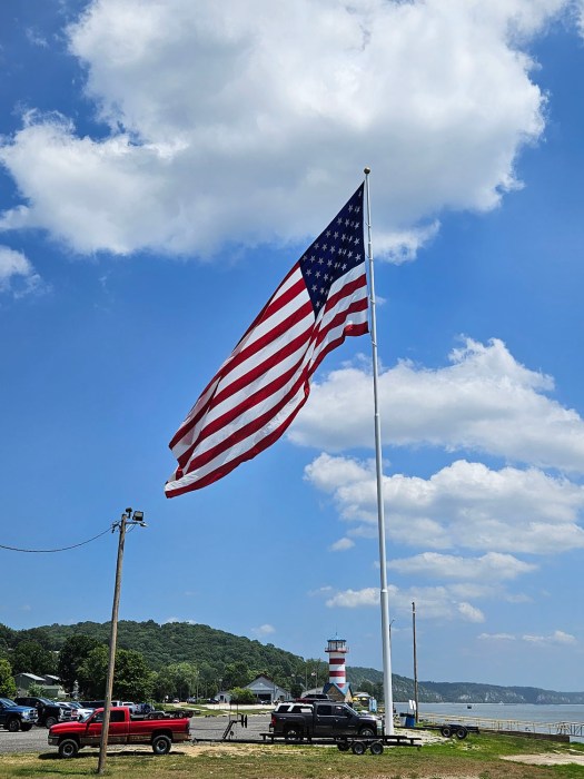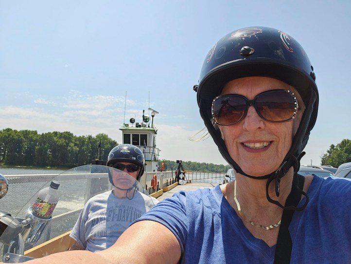 So I had to say yes. I’ve written before that my favorite trip on the motorcycle is to Grafton and usually we take the two ferries across the Mississippi and Illinois Rivers but today we rode a little further up Highway 94 to Grafton Ferry Road and took the ferry that crosses the Mississippi right into Grafton.