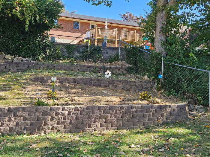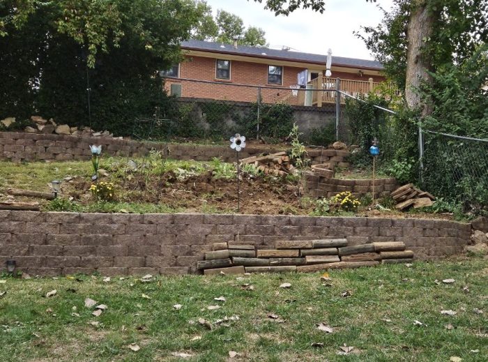 The Great Hunter has been very busy these last two weeks. He began by first taking down a landscape timber wall he’d put up…sometime in the past…10 years?…15 years? I’m not sure when or even why we put it up, but it had been up there long enough it had started to rot.