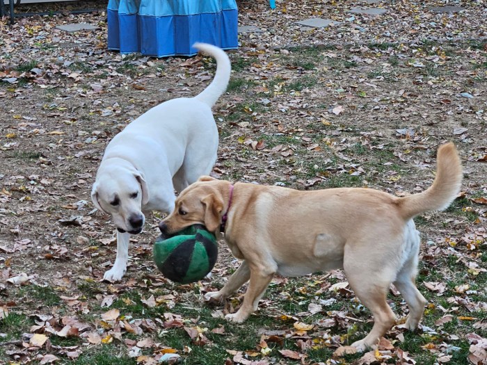 So he’s left me alone all weekend with our fur girls. Millie and Dolly are definitely a handful. Dolly is ten months old and almost as big as her sister, Millie, who weighs 100 lbs.