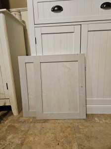 Now, on a very cold Saturday, after about three hours, the Great Hunter and I have finished the buffet and it looks great with the cupboards. I can’t wait to fill up those cabinets!
