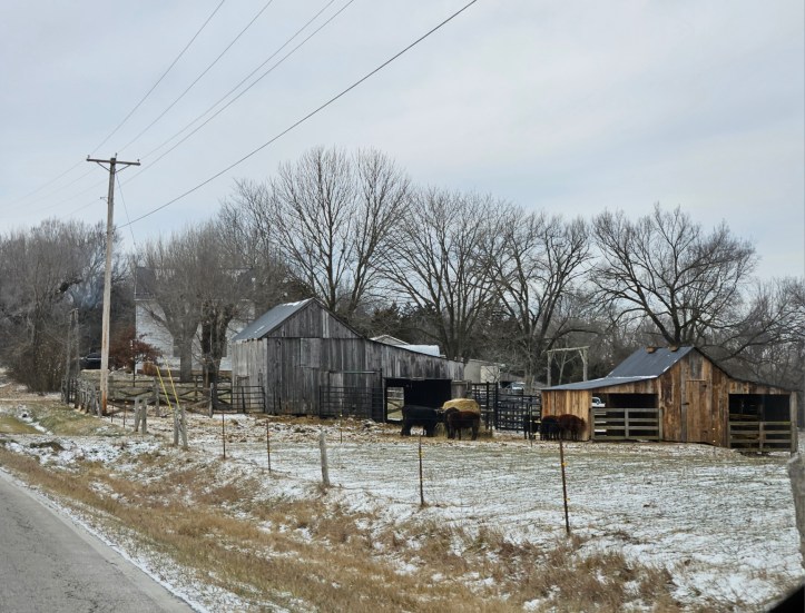 So instead of going to the aerobics class, the Great Hunter and I drove to New Haven to pick up his deer sausage. It was a very pretty day, but so cold. He said he usually goes four lane highway all the way but I convinced him that the more scenic route was via the two-lane country highways, and it was.