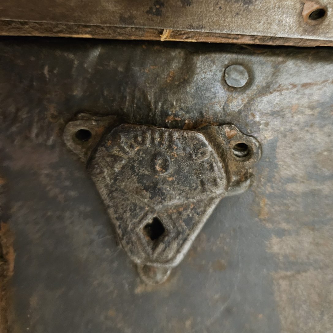 I decided to see if there was anything on the trunk that might give me some idea of when it was made or how old it was. On the metal brackets, I found the inscription “Pat July 9 72”.