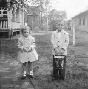 The first house I remember living in was a large brick duplex built in the 1880s. The house has two stories, a stone foundation basement and a full attic. The walls were so thick I could sit comfortably in the window and read a book while looking outside. The house had a cellar door and a rain barrel and an apple tree much like the old song “Playmate, Come Out and Play with Me”.