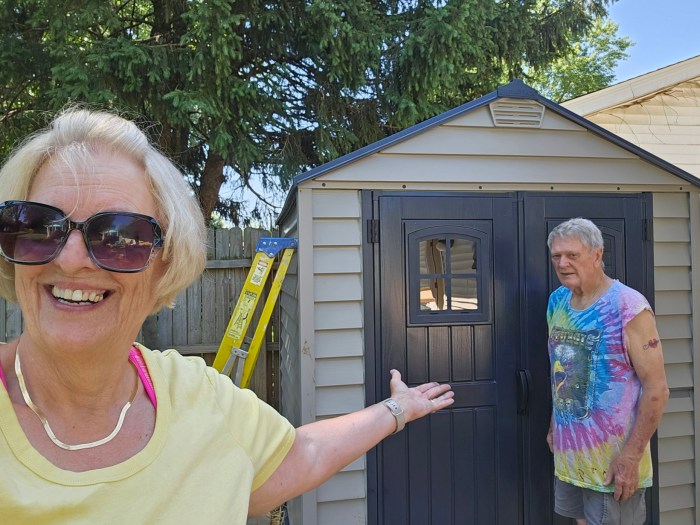 The Great Hunter and I have expanded our working-together skills these last few months. We’ve managed to put together all the kitchen cabinets:
