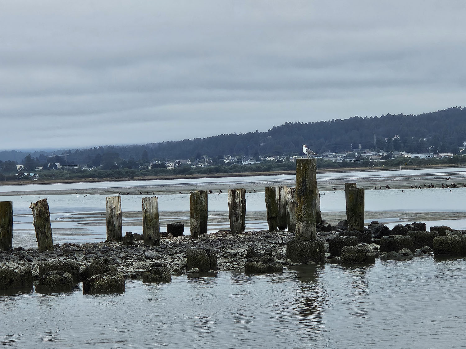 On Sunday, we took an hour and a half ” eco/wildlife cruise” of the Bay of Eureka, the second largest bay in California aboard the 1910 MV Madaket ferry. The 90-minute narrated cruise takes you along the shores of the bay and Eureka’s waterfront. It was very cold out on the water and I layered up as best as I could with what I brought, a long sleeve thin Hoodie, a sweater and my lightweight blue Jean jacket. Knowing me and how I’m always cold I also brought along a small Afghan from the couch in the cabin. What a lifesaver that was. I was a little disappointed with the tour. The shoreline is industrial and some of it had seen its better days. The Wildlife didn’t cooperate well either. We only saw the heads of two seals, a couple jumping fish and several different species of birds.