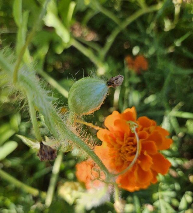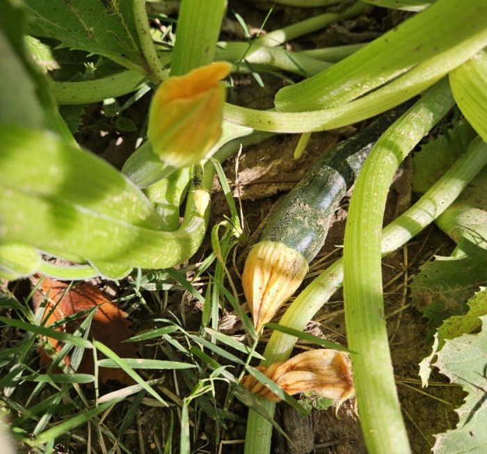 I’m not really sure it’s a melon, but it’s the closest thing I’ve gotten on the plant that looks like it might be a watermelon. I’ve never grown either one of these plants before, in fact, I’ve never eaten a zucchini except for in zucchini bread. But when I went to find plants earlier this spring, I decided to give them a try. What I found though was that zucchini plants (and maybe others too) have male and female flowers and all I had was male flowers. After doing some pruning of the male flowers, it seems to have worked and now I’m getting some female flowers too. Who ever would have thought I’d be excited about a zucchini plant.