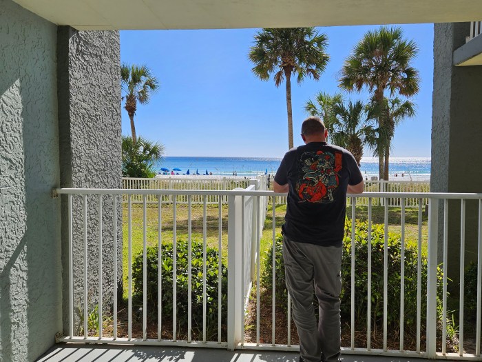We left St. Charles for Panama City Beach, Florida around 4 p.m. on Friday and drove until 11 p.m. when we stopped for the night in Tupelo, Mississippi. This morning at 6 a.m. I swear I heard Dolly bark. The funny thing is, I was lying in my bed in a motel room in Tupelo, and Dolly was back in St. Charles. But it sure seemed like I’d heard it.