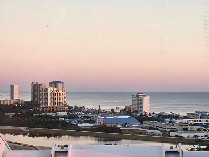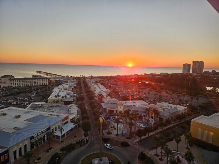 My son, granddaughter and I ended our day with a sunset ride on the Sky Wheel at Pier Park in Panama City Beach. The SkyWheel observation wheel is nearly 200 feet tall and gives a bird’s eye view of the surrounding landscape.
