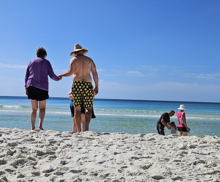 I’m staying in a condo with my oldest son, my daughter-in-law, my soon-to-be teenage granddaughter (in one week) and my daughter-in-law’s mother, who has dementia (that’s a whole other story by itself). The condo has two large bedrooms, both suites, one with two queen-sized beds and the other with a king-size bed. That’s the bed I’m sharing with my granddaughter.