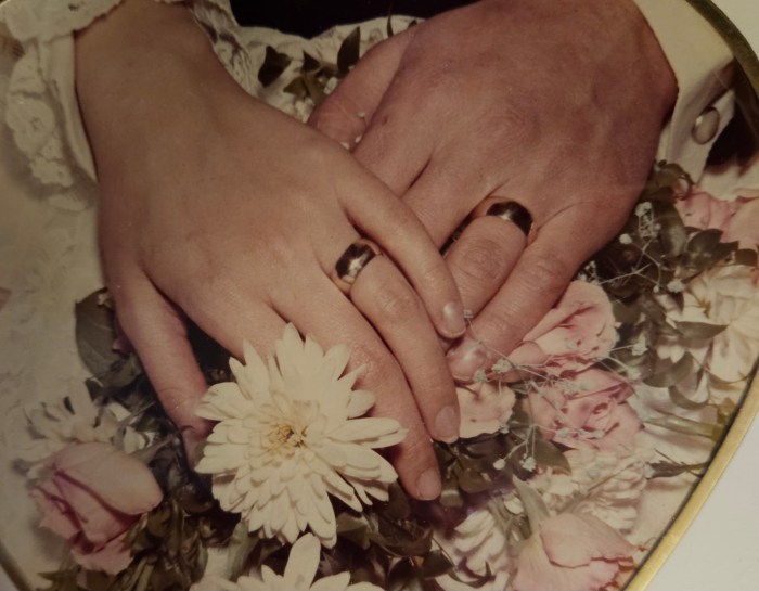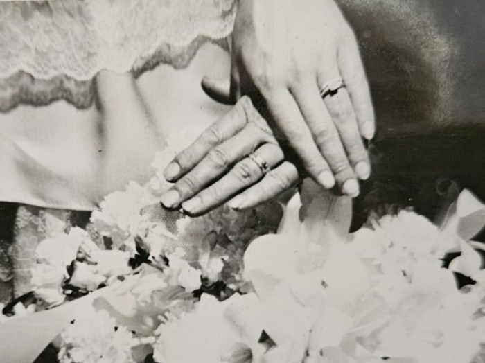And the hand that now can wear the wedding ring my mother put on my Dad’s hand on that warm, sunny April day in 1952.