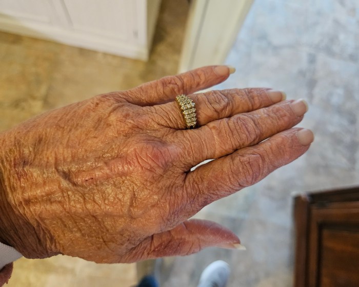 After she passed away, I remembered she had given me a ring and told me she wanted me to have it. I’d put it away in a drawer intended at some time to make sure she took it back because it was an expensive ring.
