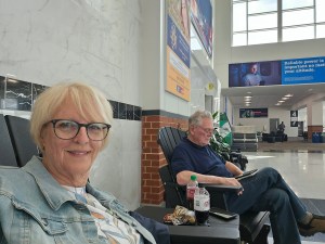 A couple of days before we were to leave, I decided we would stay only four days instead of the original six to save quite a bit of money. And I say “I” decided because the Great Hunter is the traveler who just packs his bags and waits at the door to be told what to do. I found a cheaper flight, but the only catch was that it didn’t leave until 5:30 p.m. and we had to turn in our rental car at noon. Luckily, the airport in Charlottesville is small and we were comfortable enough that the five hours went by fairly quickly.
