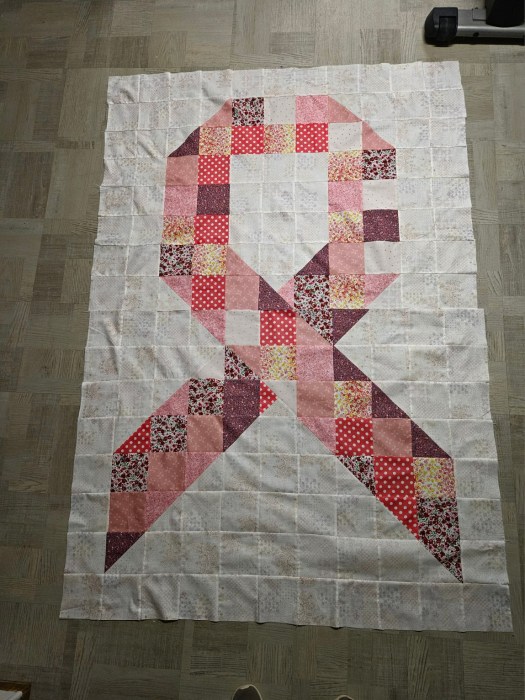 Me, I decided right before we went to Branson that I wanted to make a quilt for a dear friend who is battling cancer for the third time. I found a free pattern online and using most of the fabric I had, I’ve put it together. I now only have to finish the quilting, bind it, and get it in the mail to her.