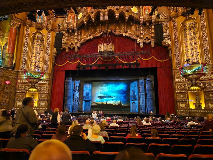 As I said, our Fox Theater is truly a masterpiece and it’s a joy to just surround yourself with its beauty. The one big drawback is that the ability to see the entire stage depends on the size of the person sitting in front of you. Unfortunately, I could only see about three-quarters of the stage when I kept my head tilted to the left (and my neck has let me know today that it is not happy with me), and I couldn’t understand many of the words to the songs. But even with these negatives, the play was still fantastic and I’m glad I finally saw it.