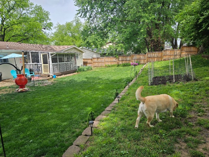 I’ve got some more bare spots where I’ve not been able to get grass to grow for a long time, so this year I’ve fenced one of them off, planted grass seed, and I’m hoping for the best.